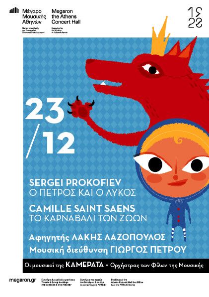 Προπαραμονή Χριστουγέννων με ένα μοναδικό family concert από τους Μουσικούς της Καμεράτας – Ορχήστρας των Φίλων της Μουσικής και τον Γιώργο Πέτρου τη Δευτέρα 23 Δεκεμβρίου στις 8:30 μ.μ. στην Αίθουσα Χρήστος Λαμπράκης του Μεγάρου Μουσικής Αθηνών! Λάκης Λαζόπουλος θα είναι ο αφηγητής σε ένα από τα πιο αγαπητά έργα μικρών και μεγάλων, στο συναρπαστικό μουσικό παραμύθι Ο Πέτρος και ο Λύκος του Σεργκέι Προκόφιεφ, ενώ η γνωστή Ορχήστρα, στο χριστουγεννιάτικο ραντεβού της με μικρούς και μεγάλους, θα παρουσιάσει επίσης το περίφημο Καρναβάλι των ζώων του Καμίγ Σαιν-Σανς. Το εορταστικό πρόγραμμα της βραδιάς συμπληρώνεται από μια σύνθεση-μινιατούρα, τη Φαντασία πάνω στο τραγούδι «Greensleeves» του Ραλφ Βων-Ουίλλιαμς