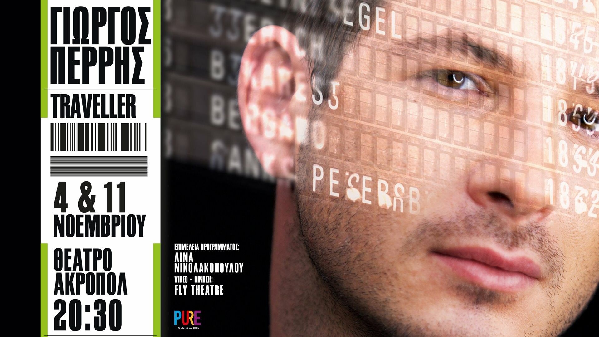 Η μουσική παράσταση “Traveller” σε καλλιτεχνική επιμέλεια της Λίνας Νικολακοπούλου που ανεβαίνει στην σκηνή του Ακροπόλ στην Αθήνα, στο Μέγαρο Μουσικής Θεσσαλονίκης και άλλες πόλεις τον Νοέμβριο είναι συνώνυμη της ταξιδιωτικής αυτής αναζήτησης. Μία παράσταση διαφορετική και πρωτοποριακή, καθώς το εικαστικό της περιβάλλον που ανέλαβαν οι Fly Theatre (Κατερίνα Δαμβόγλου – Robin Beer) θα βασίζεται σε βίντεο και ολογράμματα που θα αλληλεπιδρούν με τον Γιώργο επί σκηνής μέσα από μία πολύ σύγχρονη τεχνολογικά ματιά. Ηχητικά επίσης η παράσταση θα έχει εντελώς φρέσκο ήχο μιας και το ηλεκτρονικό στοιχείο θα κυριαρχεί στις ενορχηστρώσεις του Αλέξανδρου Λιβιτσάνου.