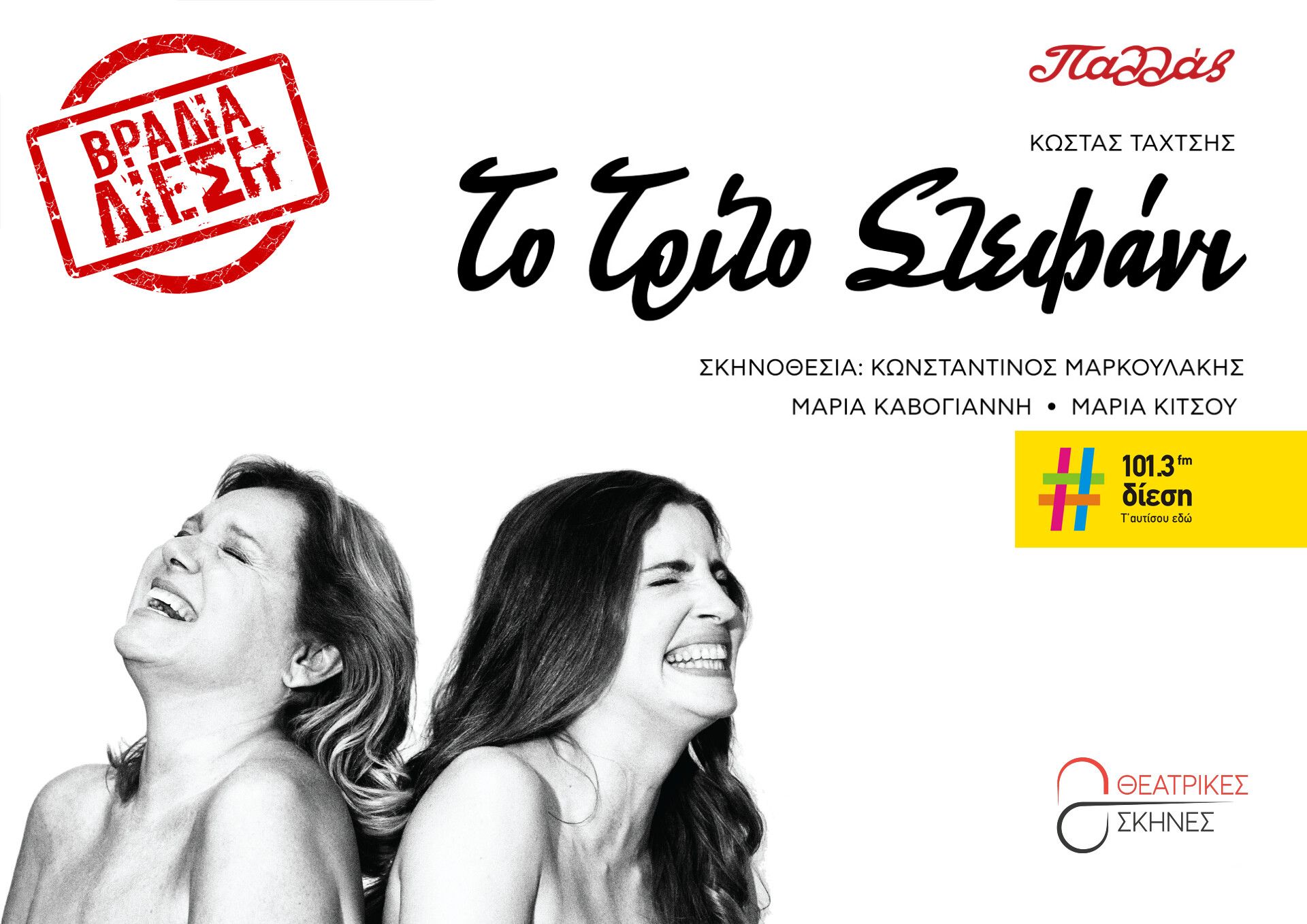 Ο Δίεση 101,3 παρουσιάζει το «Τρίτο Στεφάνι», σε μία Βραδιά για τους ακροατές του, στην πρεμιέρα των παραστάσεων, την Παρασκευή 8 Οκτωβρίου, στις 20.30, στο θέατρο Παλλάς!